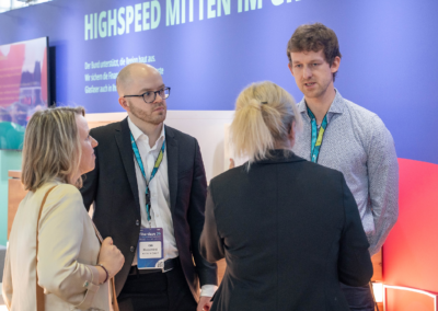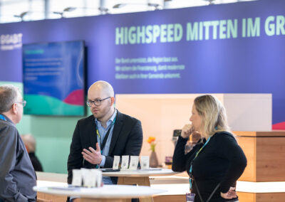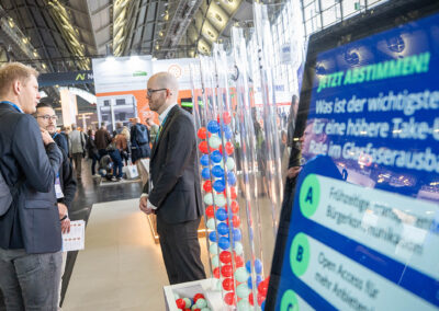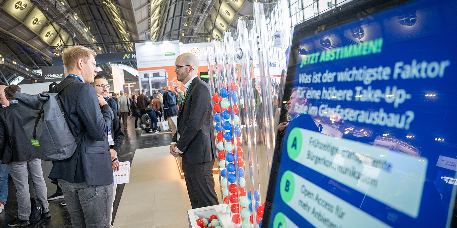 Ein besonderer Anziehungspunkt am Messestand war die interaktive Polling-Station. Mit Fragen zur Take-up-Rate in neu mit Glasfaser ausgebauten Gebieten sowie zu den wichtigsten Hebeln für einen beschleunigten Gigabitausbau wurde ein aktuelles Stimmungsbild unter den Besucherinnen und Besuchern eingeholt.